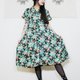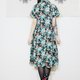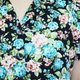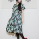 Description: F2025(Vintage)黑色底蓝色花朵大波浪裙摆短袖古着洋装(婚礼/野餐/派对)
