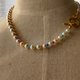 这款色彩缤纷的项链,串入了 6mm 的白色贝壳珍珠,以及随机点缀的日本顶级小颗珠饰。 项链总长约为 43 厘米。