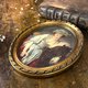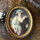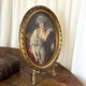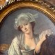 这件作品虽然是近代工艺品,但它其经典艺术氛围令人惊艳。此近代复制工艺,以精致印刷贴合于纤维板基材,再以特殊清漆模拟油画笔触纹理,完美重现了十八世纪的金色浮雕椭圆形画框细节,整体展现出无可挑剔的法式沙龙复古风格。