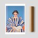 《条纹读者 Stripe Reader》透过粗笔条纹与饱和色彩描绘女性阅读的片刻,表现出安静与专注的力量。人物造型独具风格,脸部红晕与红唇设计强化其神情张力,整体画面极具当代视觉冲击力,是时尚与艺术的交融呈现。