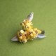 透过丝线以缠绕铁丝与纸片,之后再形塑出花卉造型。
