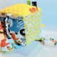- 布料使用日本、韩国或台湾纯棉布,一面是响纸能吸引宝宝注意,另一面是能启发宝宝触觉的颗粒柔软材质。