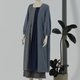 棉麻拼接连身裙 自然质感 简约文艺 宽松舒适 日系风格 250306-1