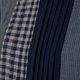 ■ 前后衣片:素色面料与格纹面料拼接,搭配精密箱型褶襇设计