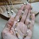 来自印度的 Kanti mala 与 Tulsi 串珠耳环,搭配天然白色淡水珍珠。全手工制作。