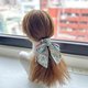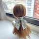 使用美国品牌棉布搭配制作成长尾蝴蝶结、加上缎带和钉珠做成的发圈,气质浪漫,无论上班或休闲聚会都适合配戴。
