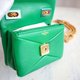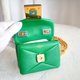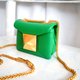 Introducing the Valentino Garavani Bright Green Lambskin Mini Card Holder on Chain, a striking accessory that combines luxury with practicality. This mini bag is perfect for those on the go, allowing you to carry your essentials in style.