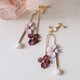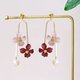 ALYSSA & JAMES 粉红色配酒红色樱花 天然珍珠耳环