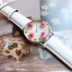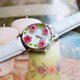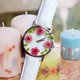 - **押花手表** 以红色小手球,绿色蕾丝花制作。