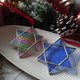 一组2件虹彩与蓝色玻璃雪花吊饰。适合圣诞树或窗户的装饰。简约彩绘玻璃梅尔卡巴。虹彩玻璃星星新年树饰。圣诞树装饰。送给朋友的温馨圣诞礼物。