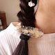 圣诞白雪发夹 尺寸:7cm 材质:韩国保色发夹 底部是极光碎片的,搭配白绣球花、香雪球、蕾丝花,三种大小的花朵营造层次感,像是雪花飞落的感觉。