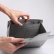 The clutch series, which features a baby animal, allows you to lock the bag as if you were folding a piece of paper.