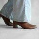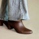 手工皮革包覆鞋跟是精品呈现的工序,会和量产规格化方式有差异。鞋楦与鞋跟的设定,更是稳定度细腻的关键。考量到生活中穿脱之间的情境外,靴口的收放细节,4.5厘米的高度是身形延伸的完美比例。
