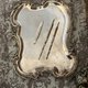 具魅力的法国洛可可风格的镀银盘,洛可可风格起源于 18 世纪的法国,常见于装饰艺术和建筑,具有华丽、细致和曲线优美的特征。盘子的边缘装饰有精美的花纹和卷曲的线条。We present you the attractive French Rococo-style silver-plated plate. The Rococo-style originated in France in the 18th century, is common in decorative arts and architecture, and has the characteristics of gorgeous, delicate and beautiful curves. The edges of the plate are decorated with exquisite patterns and curly lines.