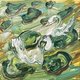荷花池上的优雅天鹅艺术纹理抽象油画,绿色色调,4英寸