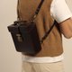 这款包包不仅仅可以作为精致可爱的箱式双肩包,同样可以用作斜挎包来搭配。这款包的整体使用质量上乘的硬质牛皮,配合简洁的内部构造。时髦的设计元素搭配复古且具备功能性的卡扣,点缀了这个以简洁为主要元素的皮包。