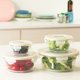 (6)如需以未加盖方式堆叠保鲜盒时,请务必以厨房纸巾完全垫隔于保鲜盒玻璃本体间再堆叠,以免玻璃互相刮损。