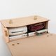 整体采用的是公文包的外观设计,缩减了尺寸,用拧扣开合,释放了公文包的正式感,更加可爱休闲,内部空间大,背起来时尚有型, 可手提,单肩背