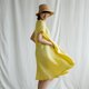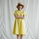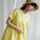 A-line Linen Dress with Shell Button in Lemon - 洋装/连衣裙 - 棉.麻 黄色