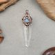 这次用金属线编织为白水晶柱制作了专属《皇冠》,搭配透体天蓝色拉长石,散发如月光般冷静浪漫的光辉。