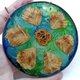 Wooden Flower wall hanging. Made of precious maple burl wood, walnut slice and crystal resin, with alcohol ink painting.