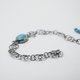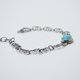 以蓝色绿松石搭配双圈焊接连接的手工链, 并且经过硫化染黑处理, 手围长度可调整, 延长链结尾是三颗小巧的蓝色绿松石, 是一款特别又有个性的手链。