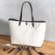 奢华地使用与腰带一样的**3.5mm厚**的单片意大利皮革制作提把。托特包开口处的滚边,也是采用意大利植鞣革制成。厚实而柔韧的皮革提把,亦有2种长度可选择,可手提的短提把及可肩背的长提把。