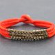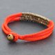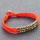 这款手工编织手链采用荧光橙色棉线蜡线与黄铜珠编织而成。
