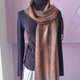 The shawl looks absolutely elegant! It is extremely soft, lightweight and has a silky touch. Silk has excellent permeability while cashmere helps retain warmth. You may wear it all year round and always look elegant!