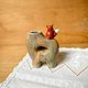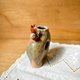 手做狐狸中空花器,深色的坯体再涂上黄色、绿色、橘色系化妆土后,刻出不规则线条,表现出层次感,再饰以小狐狸就像伫立在森林中。经过多道工序而完成的作品,优雅中带着些许的童趣。
