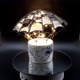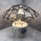 陶瓷底座是在陶轮上手工制作,烘烤至硬度,表面的装饰是手工雕刻并涂釉。