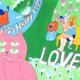原创手绘 四眼粉猫爱的广场 艺术微喷装饰画