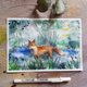 - Original cute artwork with - Fox in the forest 02 - hand painted Watercolor painting on paper. I suggest you purchase an exclusive picture. It will become a nice decoration in the interior. Painting, Watercolor on paper. Size: 7.7-5.3 in (19.8 - 13.7 cm). The painting is sold unframed.