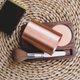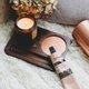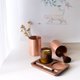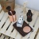 - 沉圆落月专门设计了三个不同的凹槽来方便化妆工具在桌面上的收纳,长型凹槽为放置小件特别设计。选择紫铜来搭配黑胡桃木,让整体颜色更加柔软,黑胡桃木也显得没那么沉闷呆板。化妆工具套组包括了一个托盘和一个刷筒,可以选择自然氧化,或者封釉效果的哦~