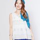 这件名为清爽森阳密语的无袖上衣,灵感源自彩色玻璃的透光与细节美感,图案如光影折射般流动,让人联想到教堂窗棂洒下的午后圣光,明亮而柔和。