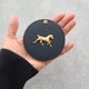 精致、优雅、简约的化妆镜,带有可爱而精致的马匹图案。