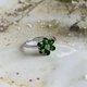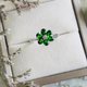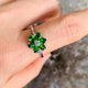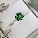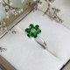 花朵造型戒指(花朵系列),镶嵌绿色铬透辉石和白色锆石花蕊