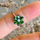 🍃绿色铬透辉石,天然深绿色原石,椭圆形切割,尺寸为3x4毫米。宝石净度高,光泽度佳。花蕊为圆形钻石切割白色锆石。