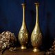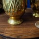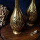 英国老黄铜花瓶,浅雕刻鸢尾花
