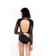 Tracker suit 長袖 連體泳衣 / 黑色+玫瑰 花 打印