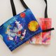 #商品故事|红宝蓝宝和好朋友们环绕地球,心上淡粉色的线吸引牵动的彼此,代表着不同的爱温暖美好着地球,不只是地球更有其他行星一起闪耀整个星空,为了浩瀚美丽的宇宙,减少使用一次性塑胶袋,利用可重复使用的环保提袋,更有爱。