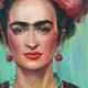 弗里达*卡洛原画一个女人的肖像花美丽的女孩红色