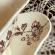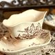 迷人的法国古董 Longchamp 铁质陶(Terre de Fer)酱汁盅,约制于1890至1920年间,典雅的棕红色植物图腾以转印技术细致呈现,散发法式乡村与美好年代的优雅气息,适合古董收藏或欧式餐桌摆设。Long champ 是法国知名的陶瓷品牌,创立于 19世纪初(大约1790年代),位于勃艮第地区的 Dijon(第戎)附近的 Longchamp 村。这个工坊以制作精致的 faïence fine(精细陶器) 和 Terre de Fer(铁质陶) 着称。