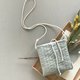- A compact, crocheted square mini-shoulder bag with three storage compartments.