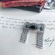 - "Curtain call" series motif with the curtains opened. Based on decorative vintage blades, it is a unique brooch with black Swarovski like eyes. Swarovski rhinestone with beautiful sparkle drifts to the left and right is gorgeous.