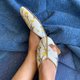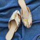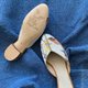 这是双很安静的拖鞋,需要一个细致的人去驾驭它, 柔白色的丝绸面料上,手工绣制捕捉了小鸟跃向枝头的一刹那。