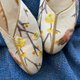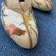 鞋面:手工繡制小鸟在梅花枝头鸣叫的瞬间