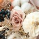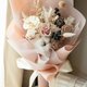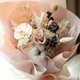 此款花束的配色是以大家所喜爱的奶茶色来设计。奶茶色也是我自己非常喜欢的颜色,给人一种温暖的感受。整体是以珍珠奶茶的样貌为设计的灵感,奶茶色的花朵们,搭配上白色的花材,与极似珍珠的石斑木果实,打造出一款温暖人心的奶茶色花束,适合送给温暖又充满智慧的朋友或情人。