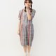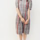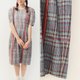 - 夏日本制复古剪裁灰蓝色格纹格子棉质短袖古着洋装