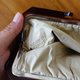 小巧可爱的零钱包,外层布面内层为防水材质,整体保存良好。实际颜色较接近图二近拍照